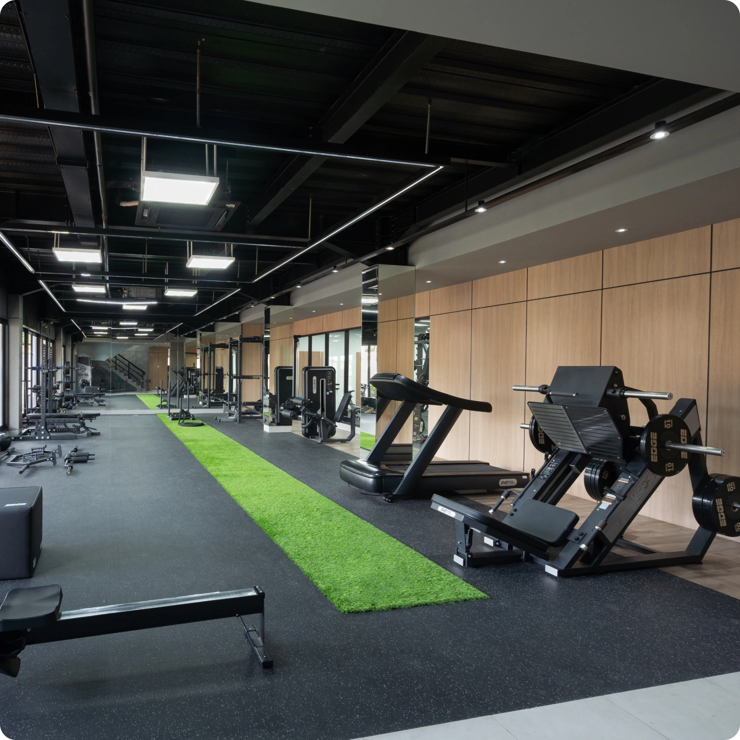 Area gym yang luas dan lengkap untuk latihan yang efektif dan nyaman.